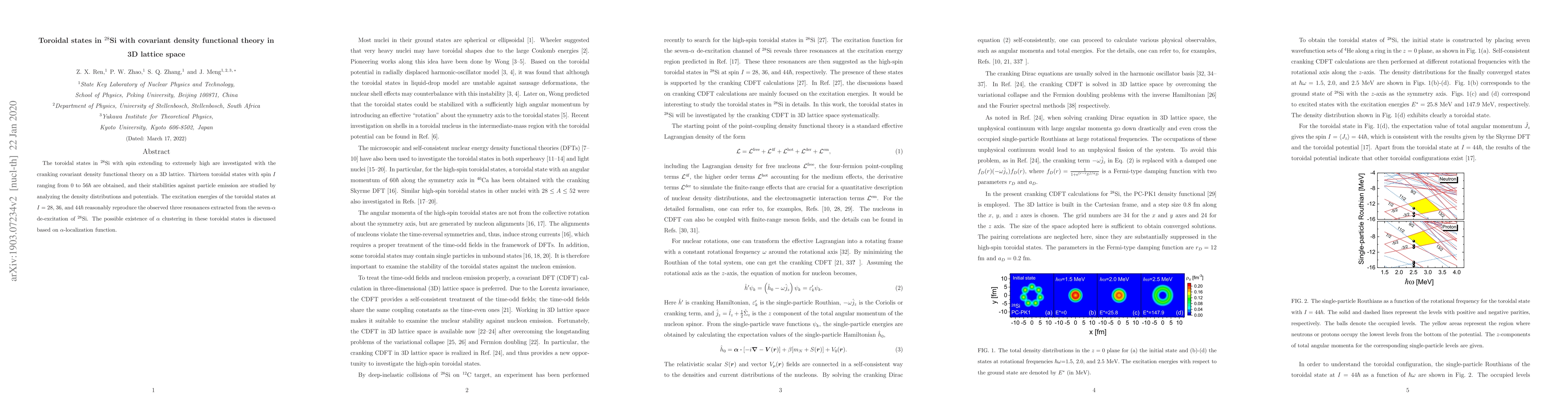 Researchers used a computational method to study toroidal states in $^{28}$Si, finding 13 high-spin states with stabilities that match observed resonances in the de-excitation of this isotope.