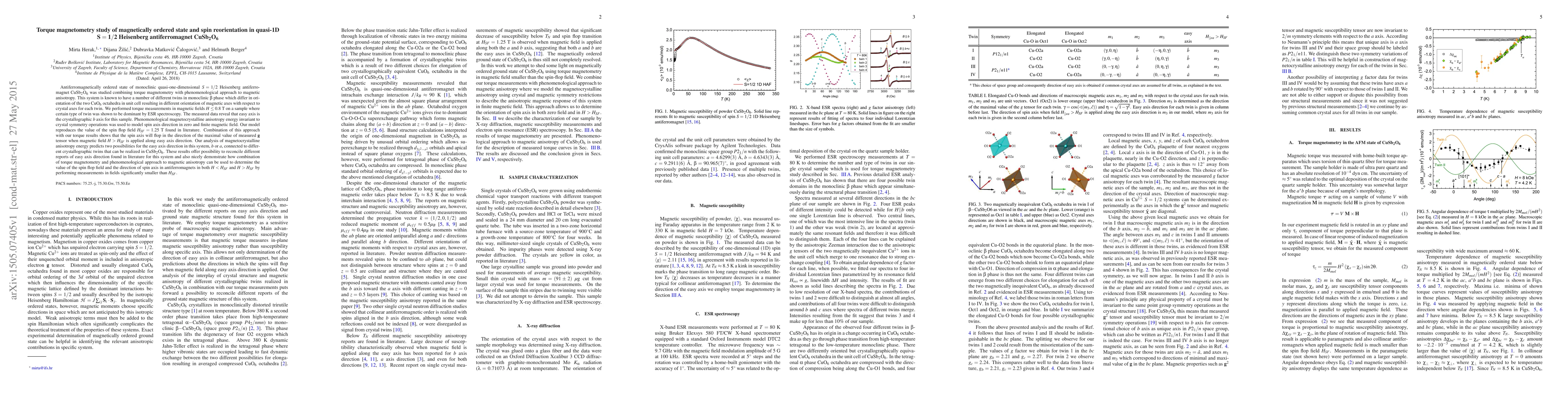 Researchers studied a spin tetramer system using torque magnetometry and ESR spectroscopy, finding evidence of anisotropic exchange interactions and strong spin-lattice coupling in the quasi-one-dimensional Heisenberg antiferromagnet CuSb2O6.