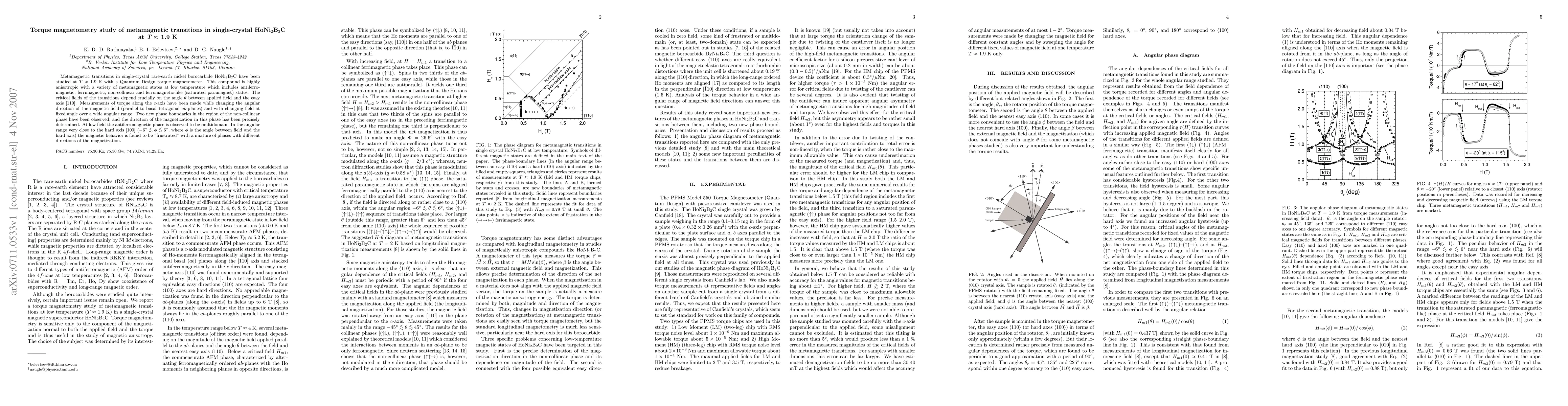 Researchers studied metamagnetic transitions in HoNi2B2C at 1.9 K using torque magnetometry, discovering new phase boundaries and precise magnetization directions in the non-collinear phase, which exhibits 'frustrated' behavior near the hard axis.