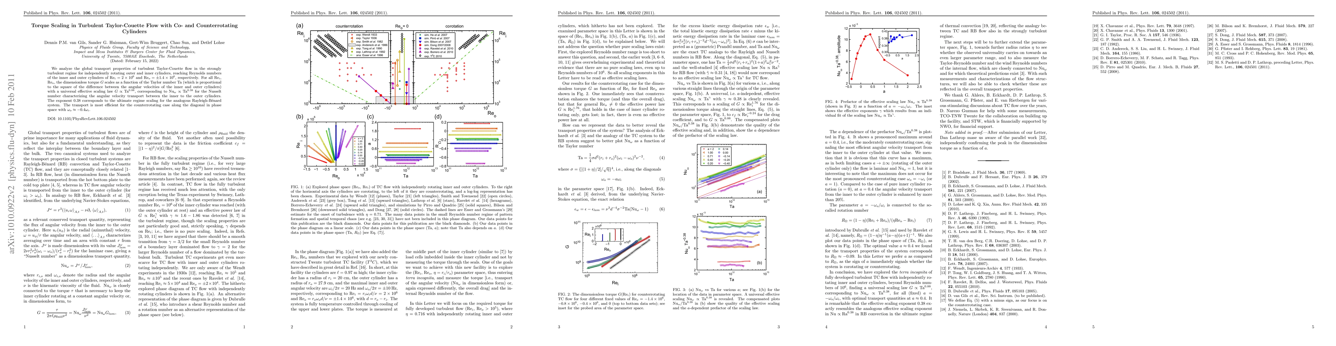 This study investigates the torque scaling in turbulent Taylor-Couette flow with varying cylinder rotations, finding a universal scaling law G ∝ Ta^{0.88} for torque as a function of the Taylor number, with the most efficient transport occurring in the counterrotating configuration.