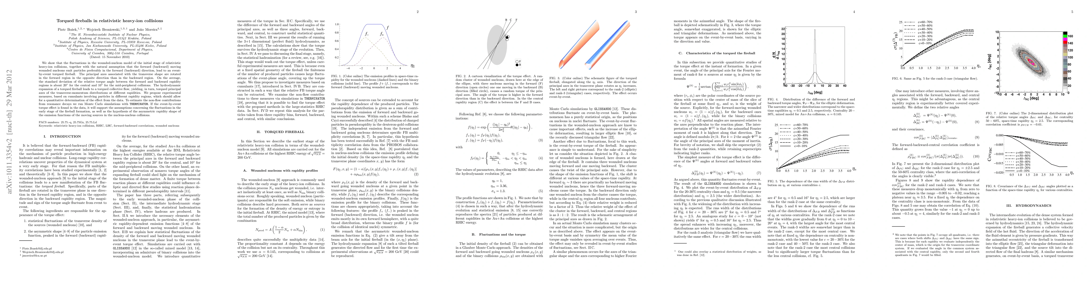 We show that the fluctuations in the wounded-nucleon model of the initial stage of relativistic heavy-ion collisions, together with the natural assumption that the forward (backward) moving wounded nucleons emit particles preferably in the forward (backward) direction, lead to an event-by-event torqued fireball. The principal axes associated with the transverse shape are rotated in the forward region in the opposite direction than in the backward region. On the average, the standard deviation of the relative torque angle between the forward and backward rapidity regions is about 20deg for the central and 10deg for the mid-peripheral collisions. The hydrodynamic expansion of a torqued fireball leads to a torqued collective flow, yielding, in turn, torqued principal axes of the transverse-momentum distributions at different rapidities. We propose experimental measures, based on cumulants involving particles in different rapidity regions, which should allow for a quantitative determination of the effect from the data. To estimate the non-flow contributions from resonance decays we run Monte Carlo simulations with THERMINATOR. If the event-by-event torque effect is found in the data, it will support the assumptions concerning the fluctuations in the early stage of the fireball formation, as well as the hypothesis of the asymmetric rapidity shape of the emission functions of the moving sources in the nucleus-nucleus collisions.