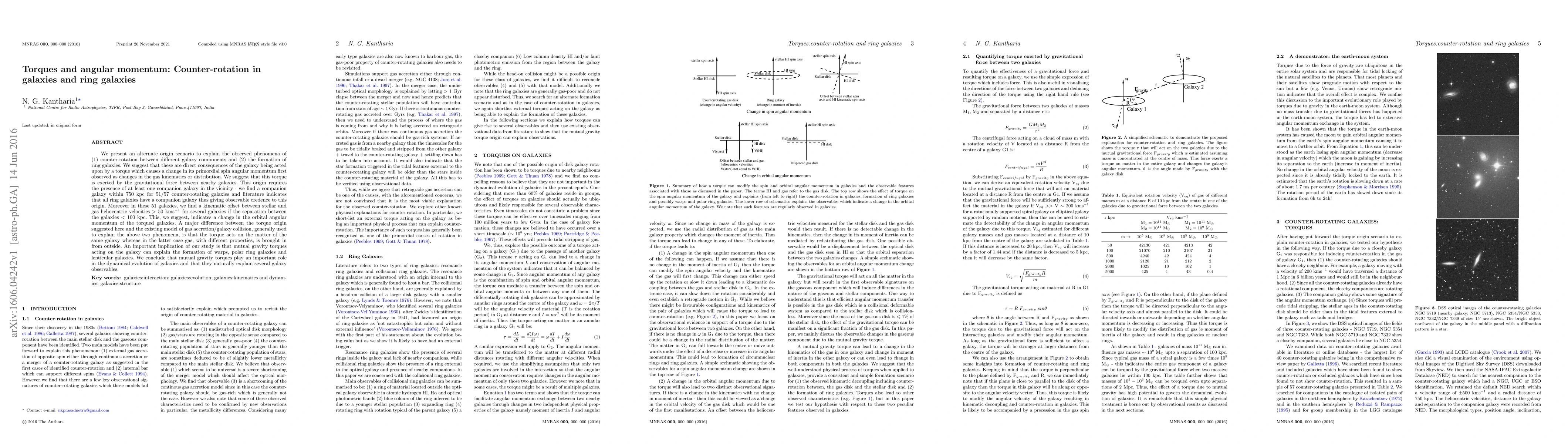 We present an alternate origin scenario to explain the observed phenomena of (1) counter-rotation between different galaxy components and (2) the formation of ring galaxies. We suggest that these are direct consequences of the galaxy being acted upon by a torque which causes a change in its primordial spin angular momentum first observed as changes in the gas kinematics or distribution. We suggest that this torque is exerted by the gravitational force between nearby galaxies. This origin requires the presence of at least one companion galaxy in the vicinity - we find a companion galaxy within 750 kpc for 51/57 counter-rotating galaxies and literature indicates that all ring galaxies have a companion galaxy thus giving observable credence to this origin. Moreover in these 51 galaxies, we find a kinematic offset between stellar and gas heliocentric velocities $>50$ kms$^{-1}$ for several galaxies if the separation between the galaxies $<$ 100 kpc. This, we suggest, indicates a change in the orbital angular momentum of the torqued galaxies. A major difference between the torque origin suggested here and the existing model of gas accretion/galaxy collision, generally used to explain the above two phenomena, is that the torque acts on the matter of the same galaxy whereas in the latter case gas, with different properties, is brought in from outside. An important implication of our study is that mutual gravity torques acting on the galaxy can explain the formation of warps, polar ring galaxies and lenticular galaxies. We conclude that mutual gravity torques play an important role in the dynamical evolution of galaxies and that they naturally explain several galaxy observables.