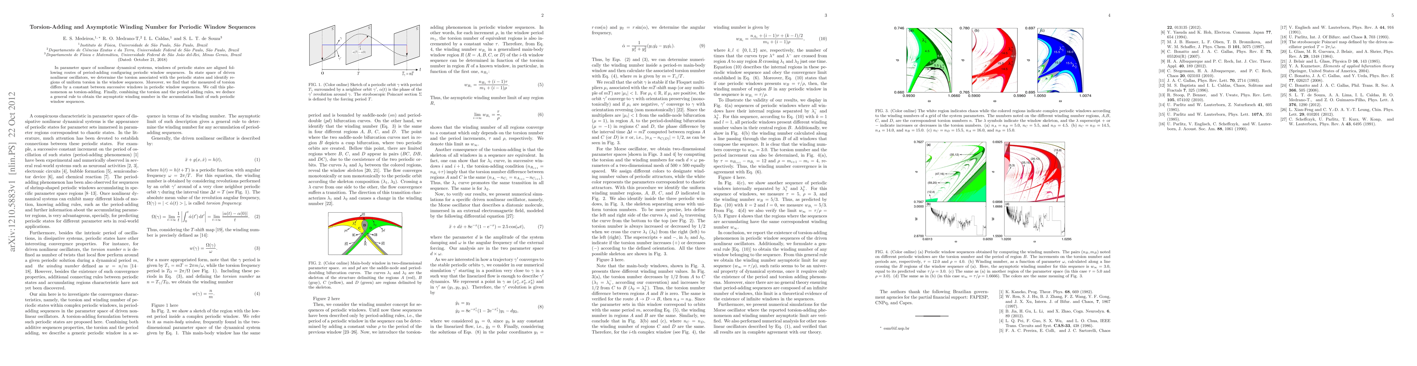 In parameter space of nonlinear dynamical systems, windows of periodic states are aligned following routes of period-adding configuring periodic window sequences. In state space of driven nonlinear oscillators, we determine the torsion associated with the periodic states and identify regions of uniform torsion in the window sequences. Moreover, we find that the measured of torsion differs by a constant between successive windows in periodic window sequences. We call this phenomenon as torsion-adding. Finally, combining the torsion and the period adding rules, we deduce a general rule to obtain the asymptotic winding number in the accumulation limit of such periodic window sequences.