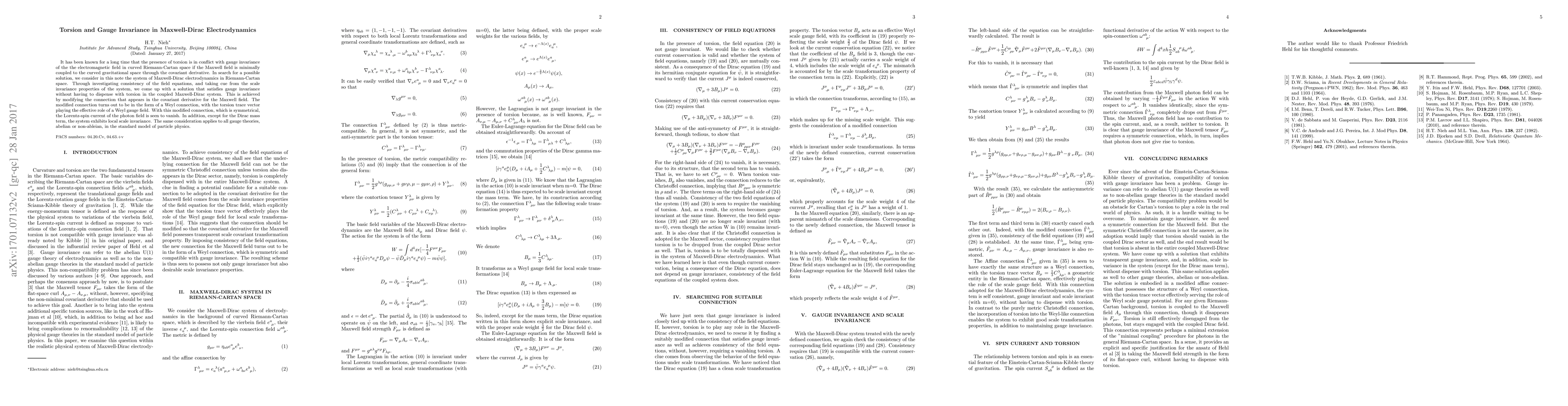 It has been known for a long time that the presence of torsion is in conflict with gauge invariance of the the electromagnetic field in curved Riemann-Cartan space if the Maxwell field is minimally coupled to the curved gravitational space through the covariant derivative. In search for a possible solution, we consider in this note the system of Maxwell-Dirac electrodynamics in Riemann-Cartan space. Through investigating consistency of the field equations, and taking cue from the scale invariance properties of the system, we come up with a solution that satisfies gauge invariance without having to dispense with torsion in the coupled Maxwell-Dirac system. This is achieved by modifying the connection that appears in the covariant derivative for the Maxwell field. The modified connection turns out to be in the form of a Weyl connection, with the torsion trace vector playing the effective role of a Weyl gauge field. With this modified connection, which is symmetrical, the Lorentz-spin current of the photon field is seen to vanish. In addition, except for the Dirac mass term, the system exhibits local scale invariance. The same consideration applies to all gauge theories, abelian or non-ableian, in the standard model of particle physics.