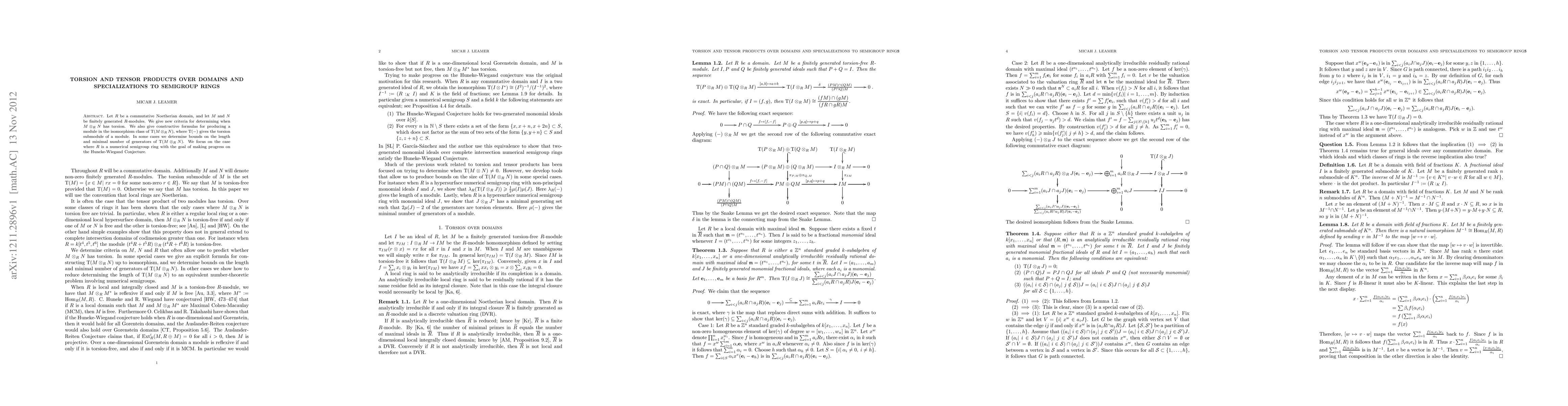 Researchers provide new criteria for determining when a tensor product of modules has torsion, with specific focus on numerical semigroup rings and potential progress toward the Huneke-Wiegand Conjecture.