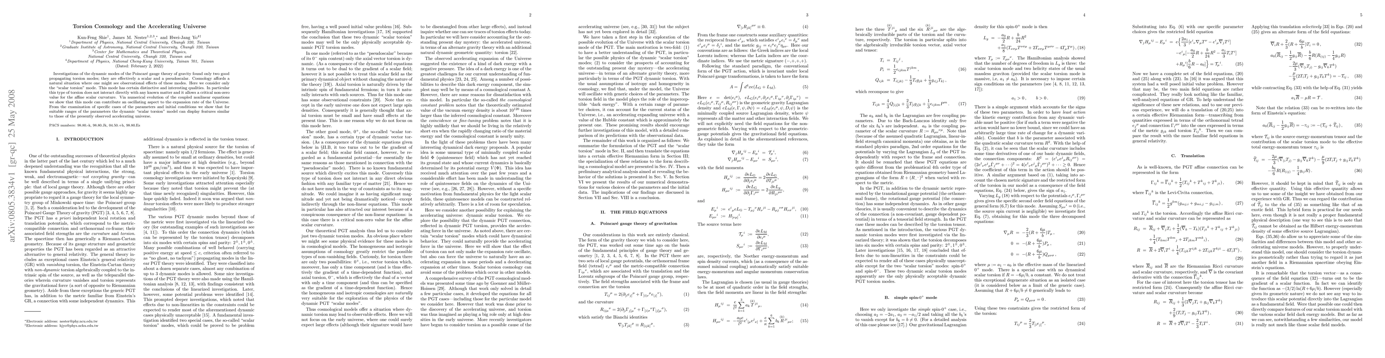 This paper explores the Poincare gauge theory of gravity to identify two propagating torsion modes, focusing on the scalar torsion mode. It demonstrates that this mode can contribute an oscillating expansion rate to the universe, potentially explaining the observed acceleration without direct interaction with known matter.
