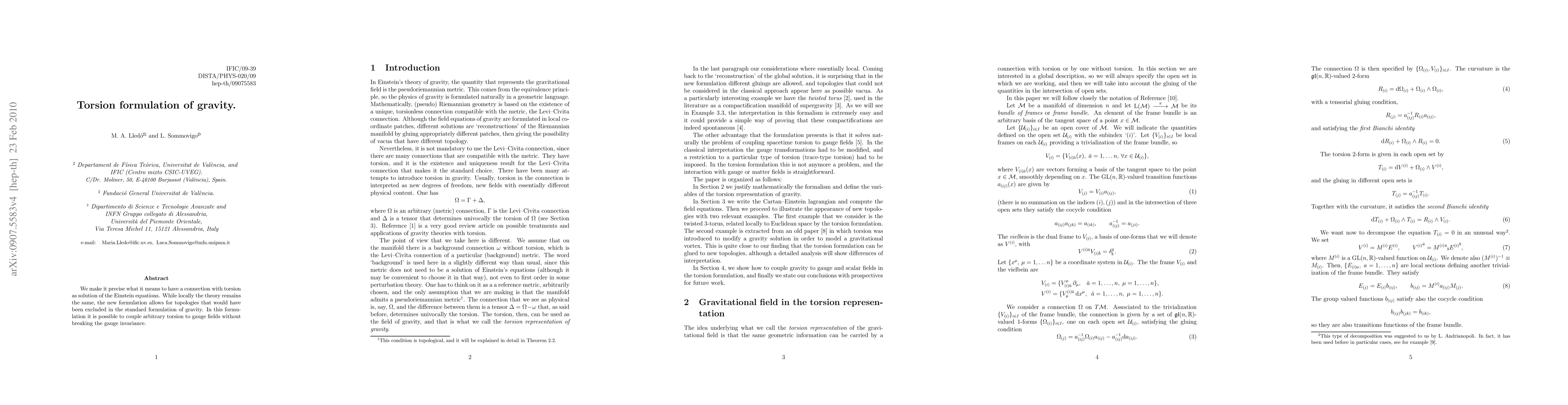 We make it precise what it means to have a connection with torsion as solution of the Einstein equations. While locally the theory remains the same, the new formulation allows for topologies that would have been excluded in the standard formulation of gravity. In this formulation it is possible to couple arbitrary torsion to gauge fields without breaking the gauge invariance.