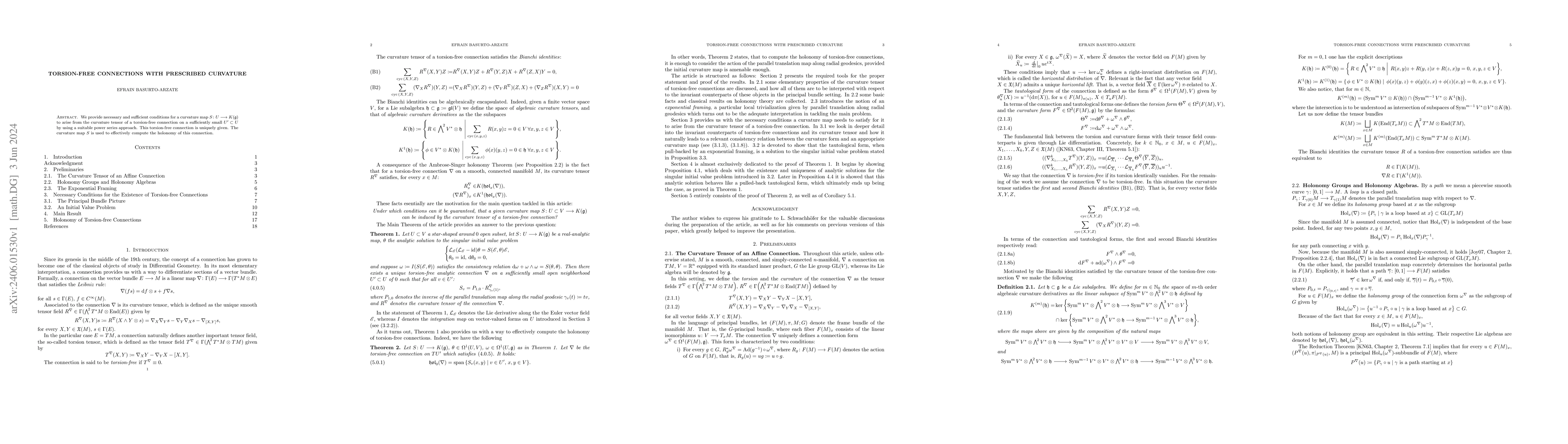 This paper establishes necessary and sufficient conditions for a curvature map to originate from the curvature tensor of a uniquely determined torsion-free connection, utilizing a power series method. The curvature map enables effective computation of the holonomy of the connection.
