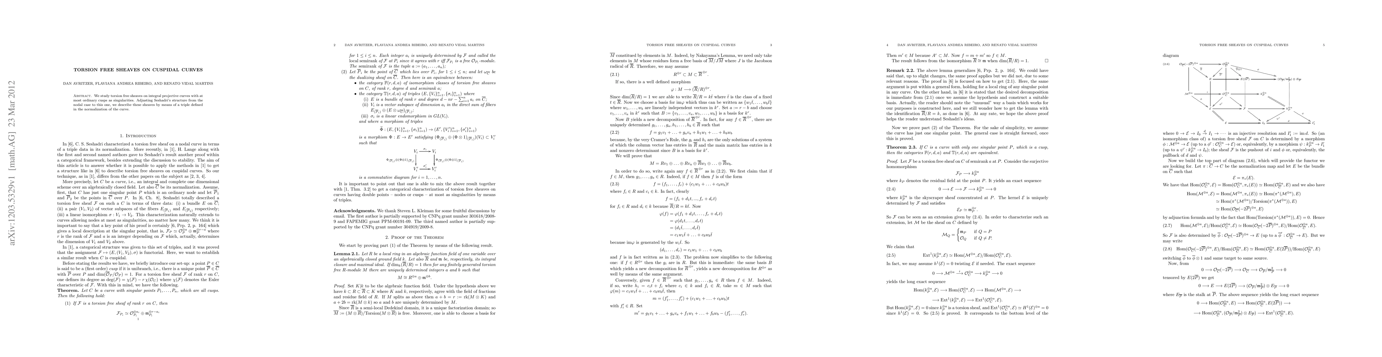 This paper investigates torsion-free sheaves on integral projective curves with ordinary cusp singularities, adapting Seshadri's framework from nodal curves and characterizing these sheaves via a triple defined in the curve's normalization.