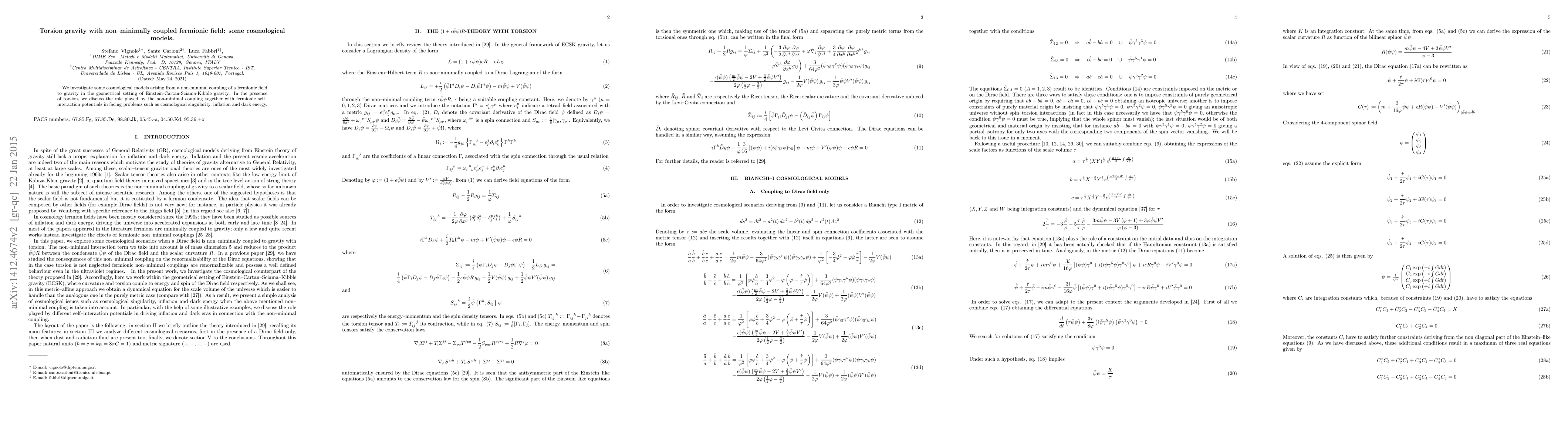 This paper explores cosmological models based on Einstein-Cartan-Sciama-Kibble gravity with a non-minimally coupled fermionic field, examining how torsion and the non-minimal coupling address issues like cosmological singularities, inflation, and dark energy.