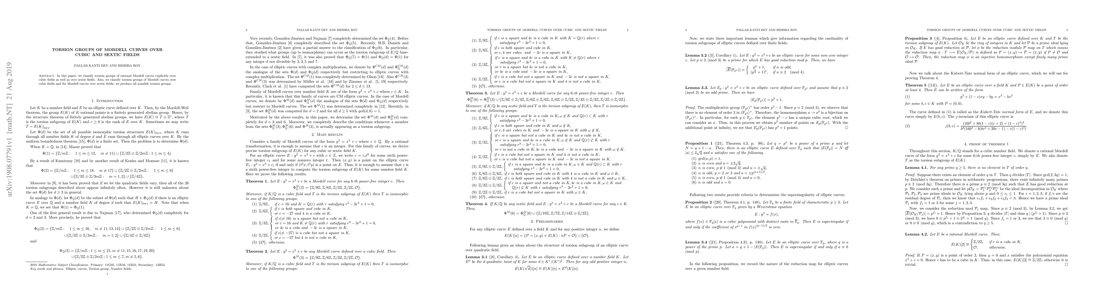 This paper explicitly classifies the torsion groups of Mordell curves over cubic fields and produces all possible torsion groups for Mordell curves over sextic fields. The focus is on determining the rational points with finite order on these curves.