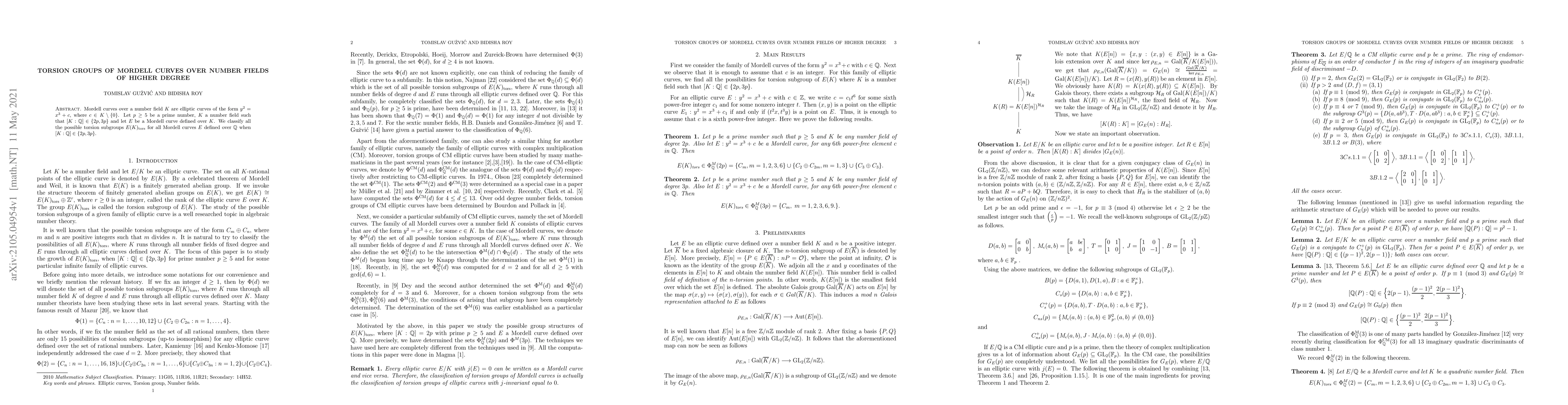 This paper classifies the torsion subgroups of Mordell curves $y^2 = x^3 + c$ over number fields $K$ of degree $2p$ or $3p$ over $\mathbb{Q}$, where $p$ is a prime number greater than or equal to 5. It determines all possible torsion structures for these curves when $K$ is a specific number field.
