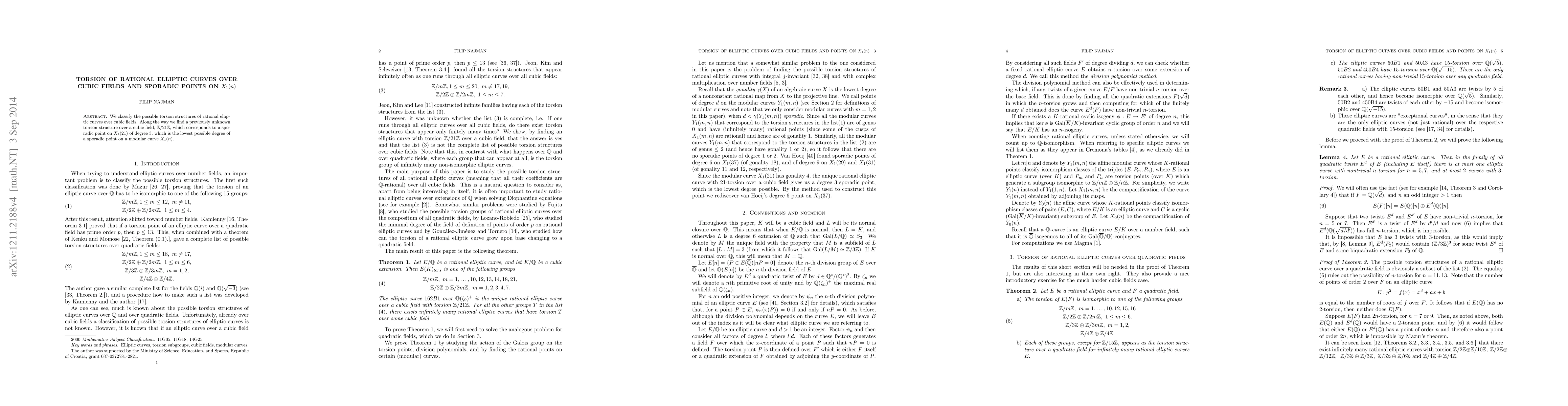This paper classifies torsion structures of rational elliptic curves over cubic fields and identifies a new torsion structure $\Z /21 \Z$, corresponding to the lowest degree sporadic point on the modular curve $X_1(21)$.