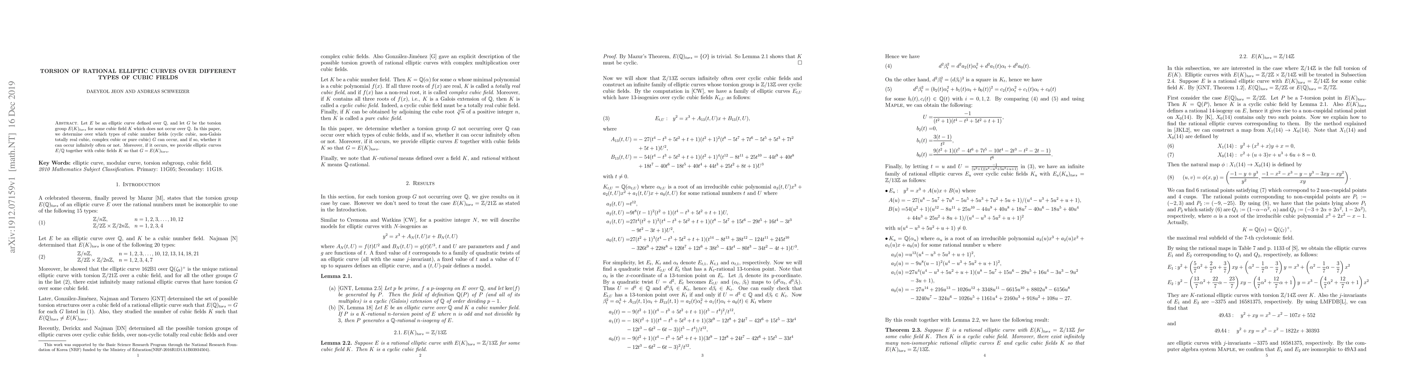 This paper investigates the torsion subgroups $E(K)_{tors}$ for elliptic curves $E$ over rational numbers $\Q$ when $K$ is a non-$\Q$ cubic field. It determines the types of cubic fields (cyclic, non-Galois totally real, complex, or pure) where these torsion subgroups can occur and whether such occurrences are finite or infinite.