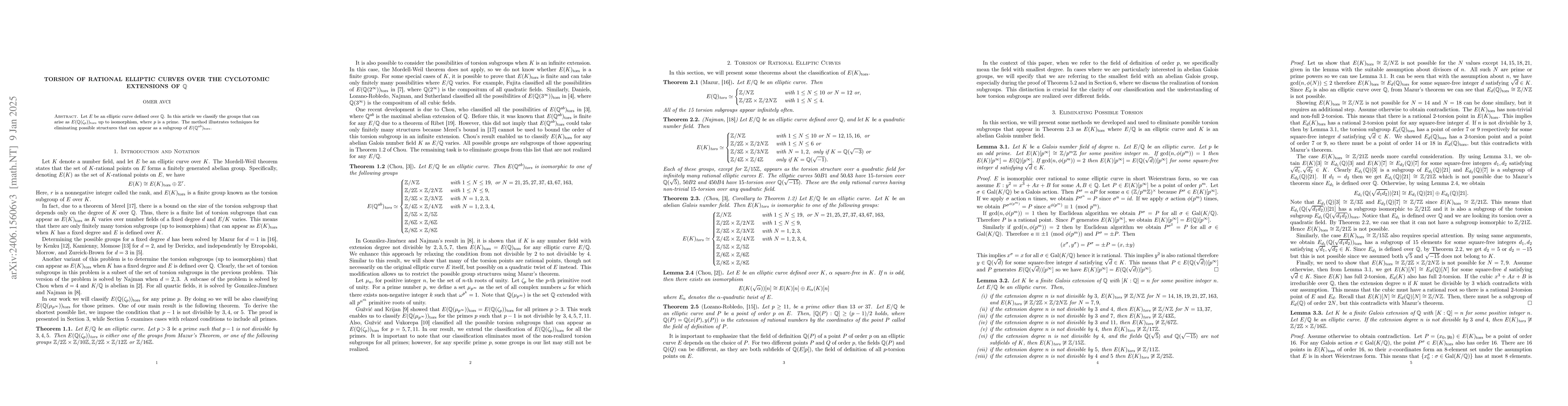This paper classifies the torsion subgroups of rational elliptic curves defined over cyclotomic extensions of $\mathbb{Q}$ for primes $p>3$ not divisible by certain small integers. Techniques are developed to exclude certain subgroup structures from appearing in the torsion group.