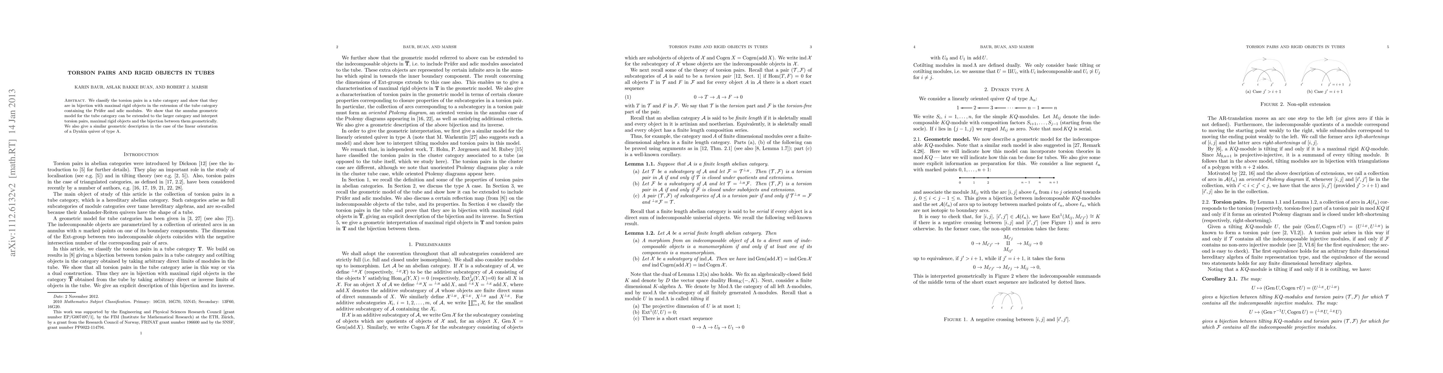 The research classifies torsion pairs in a tube category and establishes a bijection with maximal rigid objects in an extension containing Pruefer and adic modules. It extends the annulus geometric model and interprets torsion pairs and rigid objects geometrically, particularly for the linear orientation of a Dynkin quiver of type A.