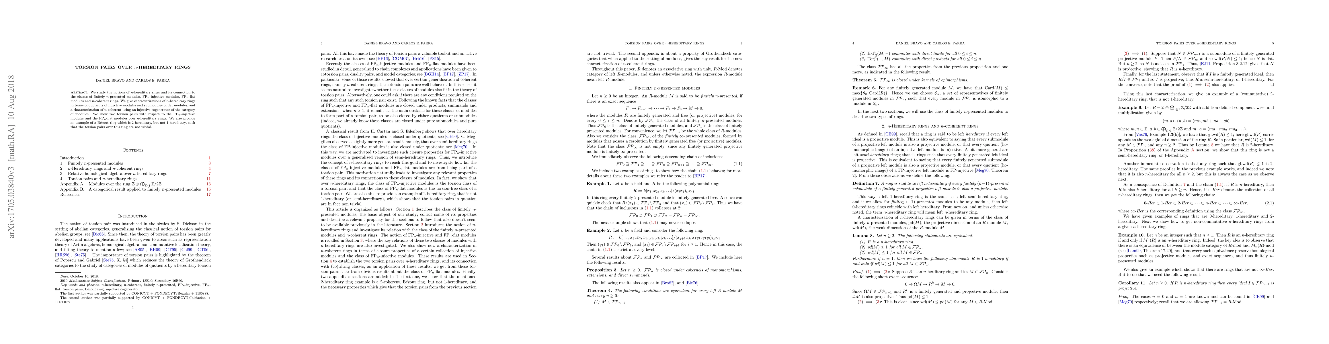 We study the notions of $n$-hereditary rings and its connection to the classes of finitely $n$-presented modules, FP$_n$-injective modules, FP$_n$-flat modules and $n$-coherent rings. We give characterizations of $n$-hereditary rings in terms of quotients of injective modules and submodules of flat modules, and a characterization of $n$-coherent using an injective cogenerator of the category of modules. We show two torsion pairs with respect to the FP$_n$-injective modules and the FP$_n$-flat modules over $n$-hereditary rings. We also provide an example of a B\'ezout ring which is 2-hereditary, but not 1-hereditary, such that the torsion pairs over this ring are not trivial.