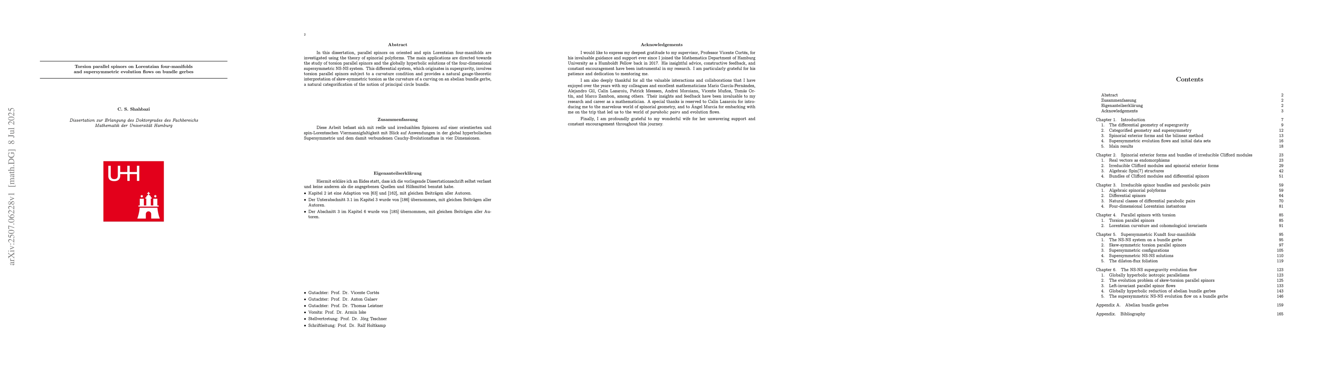 In this dissertation, parallel spinors on oriented and spin Lorentzian four-manifolds are investigated using the theory of spinorial polyforms. The main applications are directed towards the study of torsion parallel spinors and the globally hyperbolic solutions of the four-dimensional supersymmetric NS-NS system. This differential system, which originates in supergravity, involves torsion parallel spinors subject to a curvature condition and provides a natural gauge-theoretic interpretation of skew-symmetric torsion as the curvature of a curving on an abelian bundle gerbe, a natural categorification of the notion of principal circle bundle.