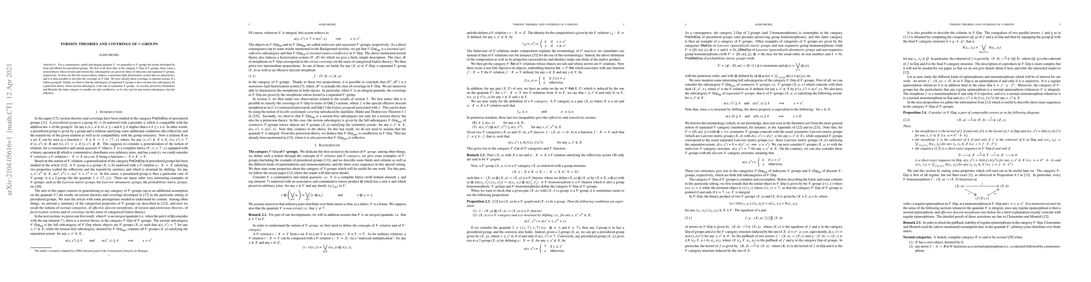 For a commutative, unital and integral quantale V, we generalize to V-groups the results developed by Gran and Michel for preordered groups. We first of all show that, in the category V-Grp of V-groups, there exists a torsion theory whose torsion and torsion-free subcategories are given by those of indiscrete and separated V-groups, respectively. It turns out that this torsion theory induces a monotone-light factorization system that we characterize, and it is then possible to describe the coverings in V-Grp. We next classify these coverings as internal actions of a Galois groupoid. Finally, we observe that the subcategory of separated V-groups is also a torsion-free subcategory for a pretorsion theory whose torsion subcategory is the one of symmetric V-groups. As recently proved by Clementino and Montoli, this latter category is actually not only coreflective, as it is the case for any torsion subcategory, but also reflective.