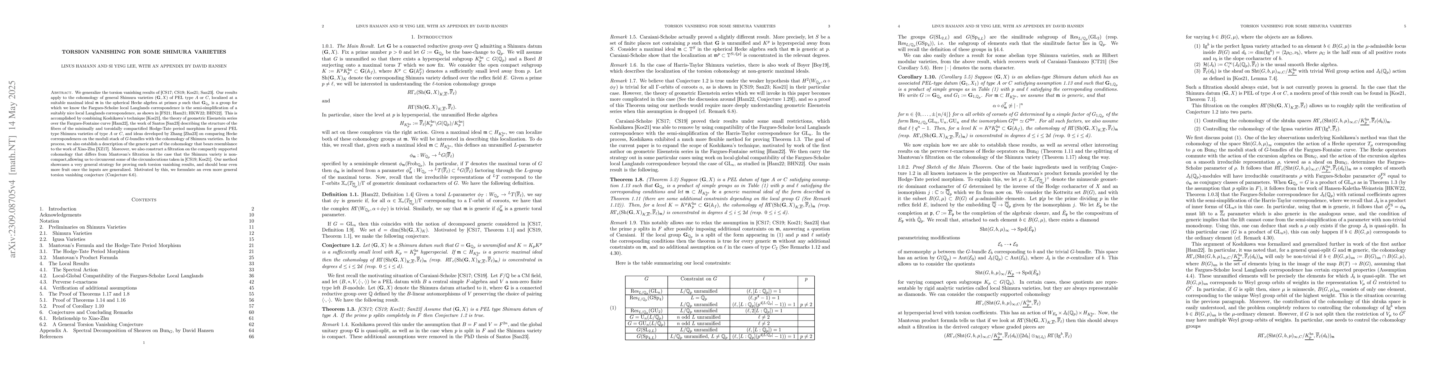 This paper generalizes torsion vanishing results for the cohomology of certain Shimura varieties of PEL type $A$ or $C$, utilizing techniques from Koshikawa, the Fargues-Scholze local Langlands correspondence, and insights from Santos and Zhang. It establishes a new filtration on compactly supported cohomology and proposes a broader torsion vanishing conjecture.