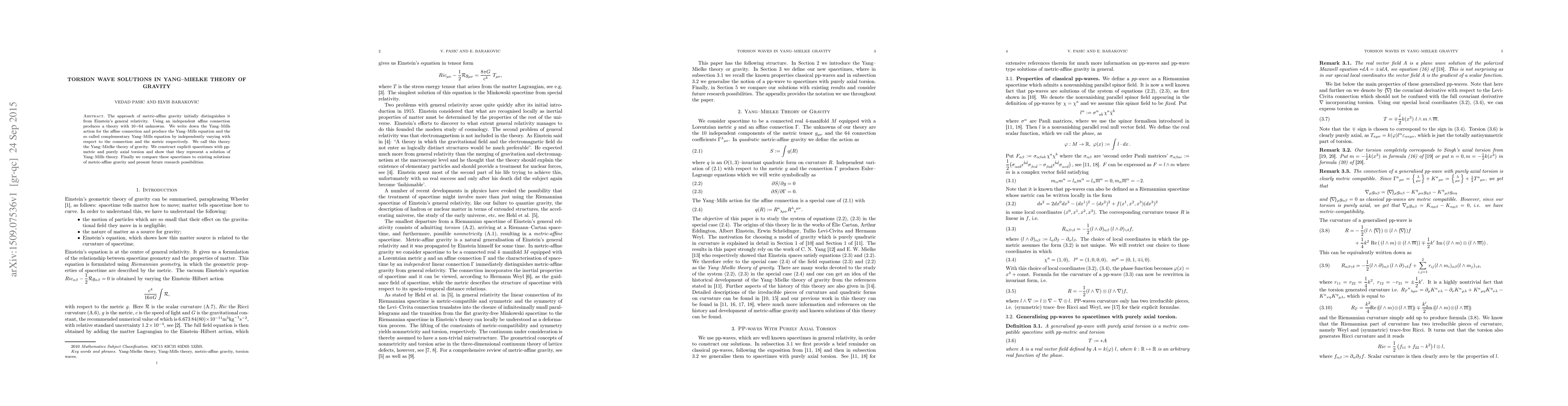 This paper explores the Yang-Mielke theory of gravity, a metric-affine approach that uses an independent affine connection, and constructs explicit solutions with pp-metric and axial torsion, comparing them to existing metric-affine gravity solutions and proposing future research directions.