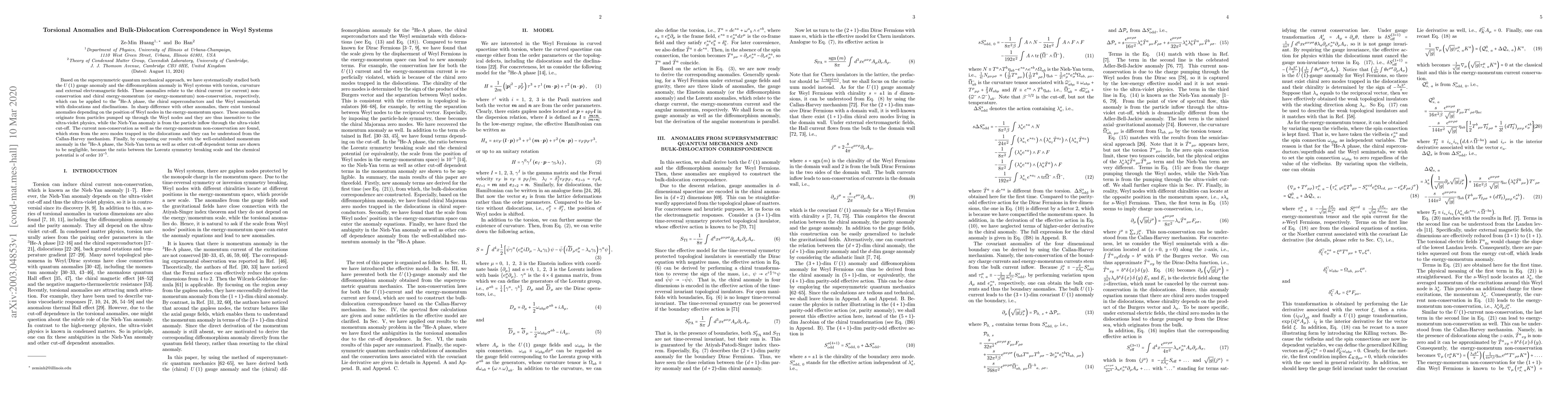 This paper investigates torsional anomalies and their relation to bulk-dislocation correspondence in Weyl systems, revealing that torsional anomalies depend on the position of Weyl nodes and are insensitive to ultra-violet physics. The study finds that current and energy-momentum non-conservation arise from zero modes in dislocations, and compares these findings with the momentum anomaly in the $^{3}\text{He-A}$ phase, showing negligible cut-off dependent terms.
