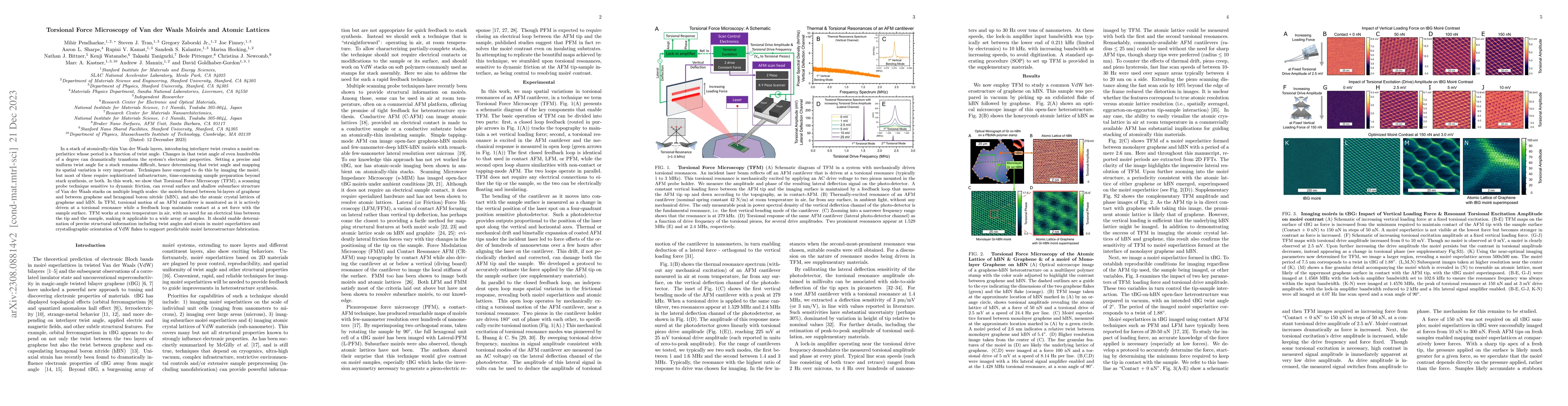 Torsional Force Microscopy (TFM) effectively reveals the moiré superlattices and atomic lattices in Van der Waals stacks by monitoring dynamic friction, providing insights into twist angles and strain without requiring sophisticated setups or electrical biases. TFM operates at room temperature in air, supporting precise structural determination crucial for fabricating predictable moiré heterostructures.