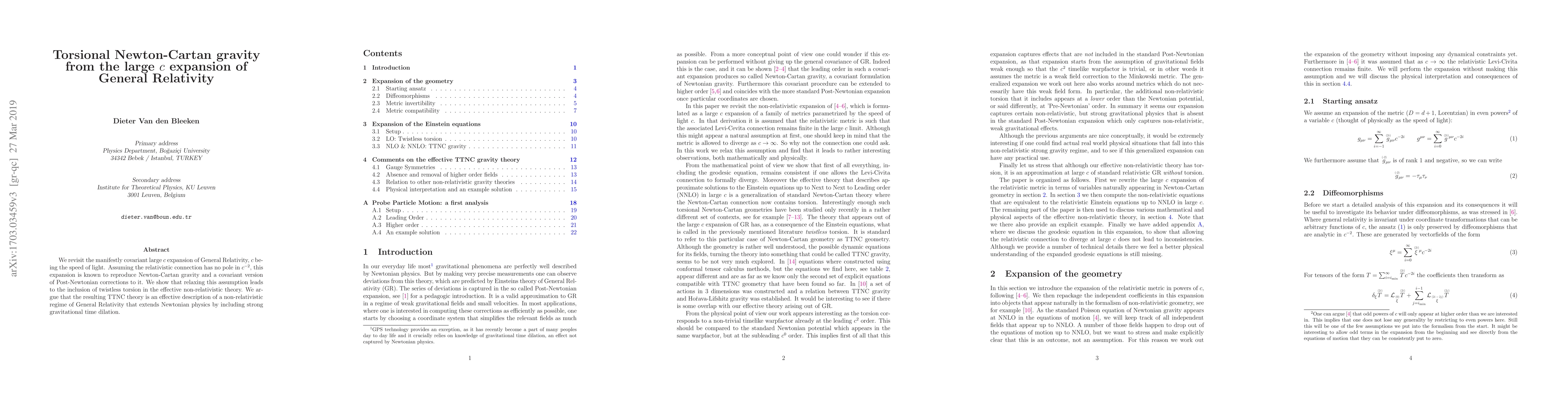 Summary: This paper explores the large $c$ expansion of General Relativity to derive torsional Newton-Cartan (TTNC) gravity, showing that relaxing the assumption of a non-pole connection leads to the inclusion of torsion, thus extending Newtonian physics with strong gravitational time dilation.