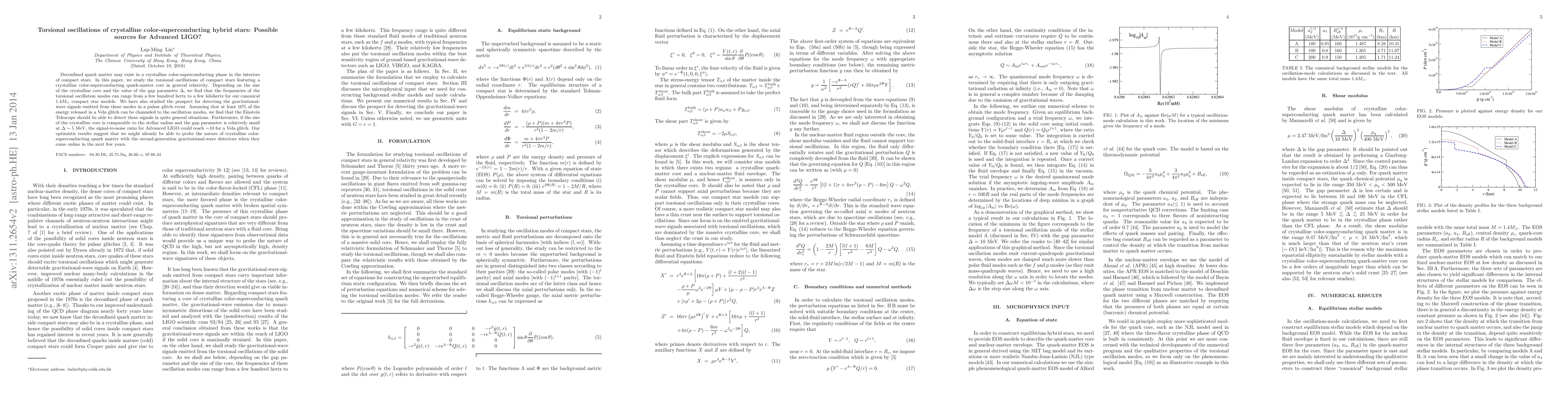 This paper investigates torsional oscillations in compact stars with crystalline color-superconducting quark-matter cores, finding oscillation frequencies ranging from hundreds to thousands of hertz. The study suggests that Advanced LIGO could detect these oscillations if the core's size and gap parameter are within specific ranges, hinting at the potential for probing quark matter with future gravitational-wave detectors.