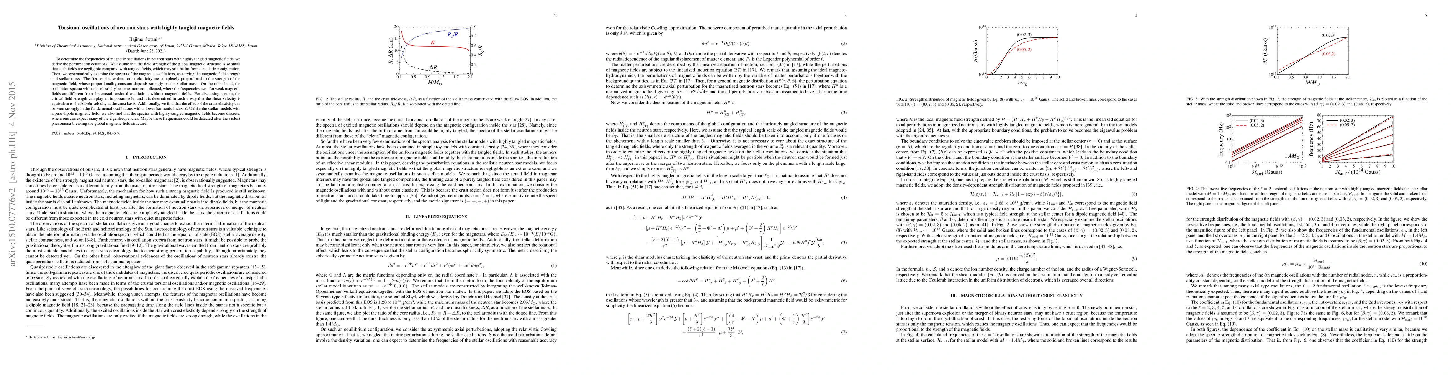 This paper investigates the torsional oscillation frequencies in neutron stars with highly tangled magnetic fields, deriving perturbation equations and examining how these frequencies vary with magnetic field strength and stellar mass. The study finds that while frequencies without crust elasticity are proportional to magnetic field strength, those with crust elasticity become more complex, especially for weak fields.