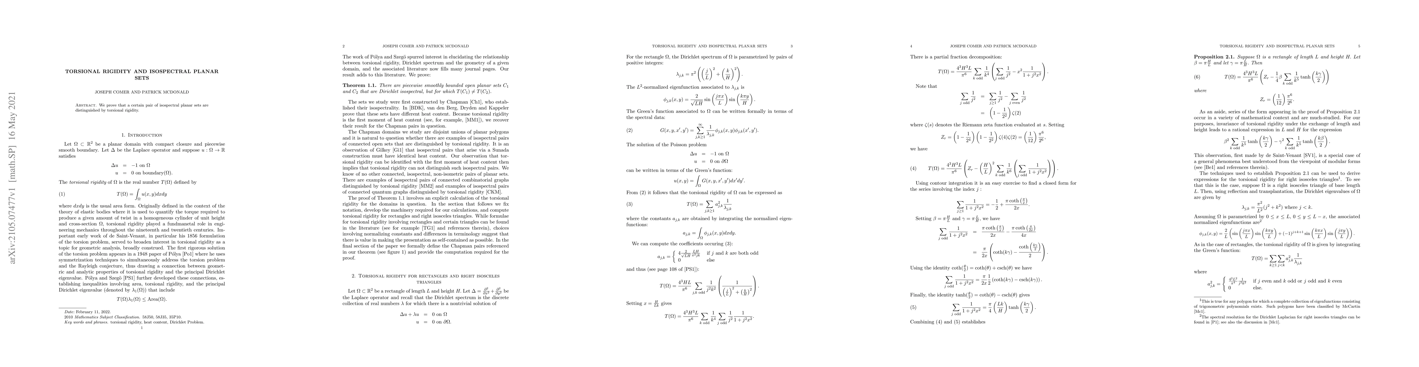 Summary: The paper demonstrates that two isospectral planar sets can be distinguished based on their torsional rigidity, providing a novel criterion for differentiating isospectral sets.