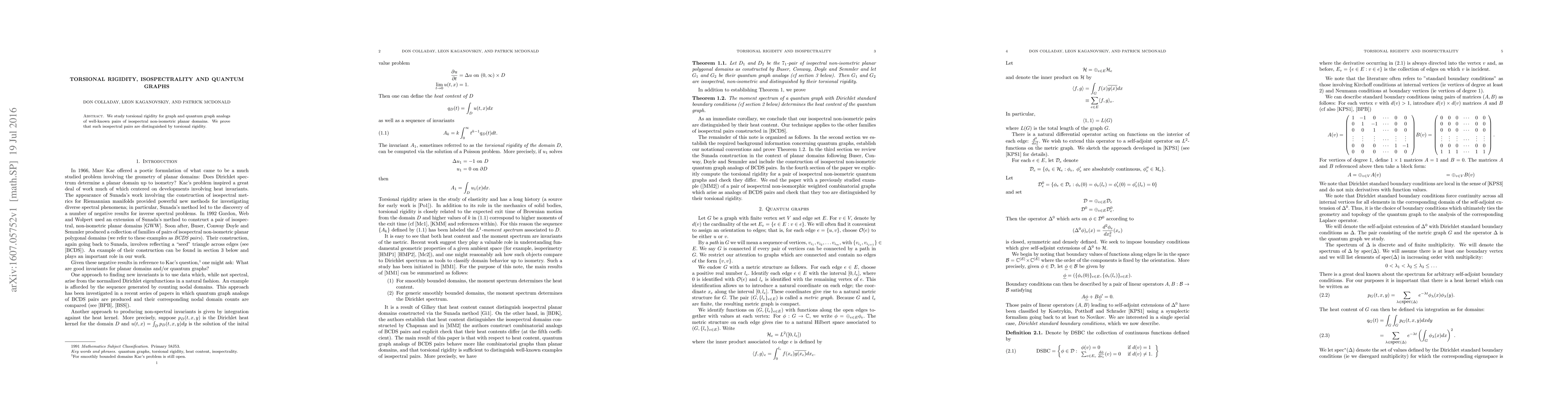 Summary: This paper investigates torsional rigidity in graph and quantum graph analogs of isospectral non-isometric planar domains, proving that these pairs can be distinguished by their torsional rigidity.