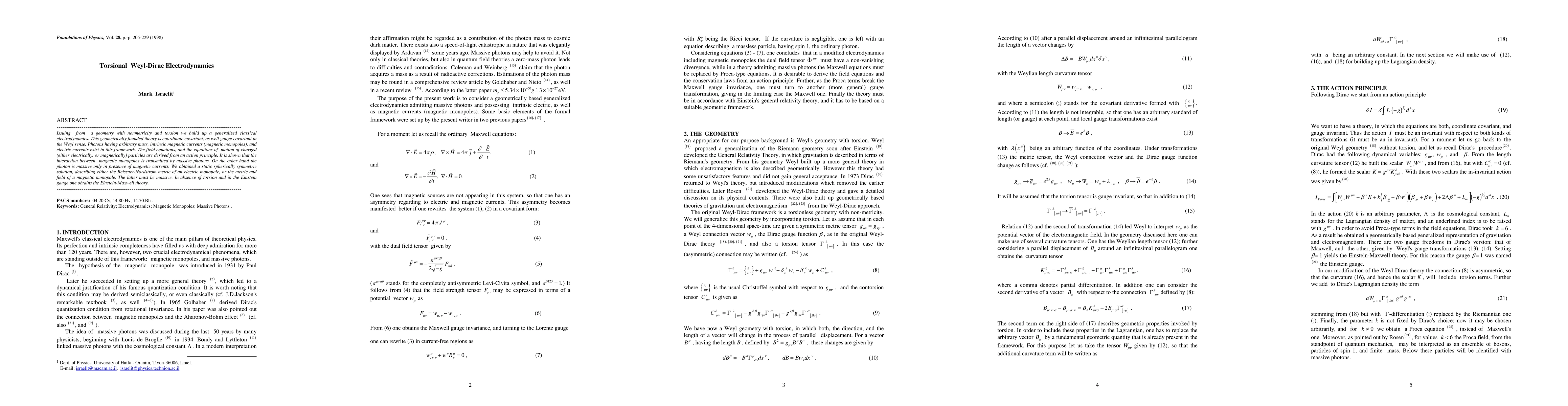 Issuing from a geometry with nonmetricity and torsion we build up a classical theory of gravitation and electromagnetism. The theory is coordinate covariant as well Weyl-gauge covariant. Massless and massive photons, intrinsic electr. and magn. currents exist in this framework. The field EQ-s and EQ-s of motion are derived from a geometrically based action. It is shown that the magn.-magn. interaction is transmitted by massive photons. A magn. charge (monopole) cannot be located together with an electr. one. In absence of torsion and in the Einstein gauge one obtains the Einstein-Maxwell theory.