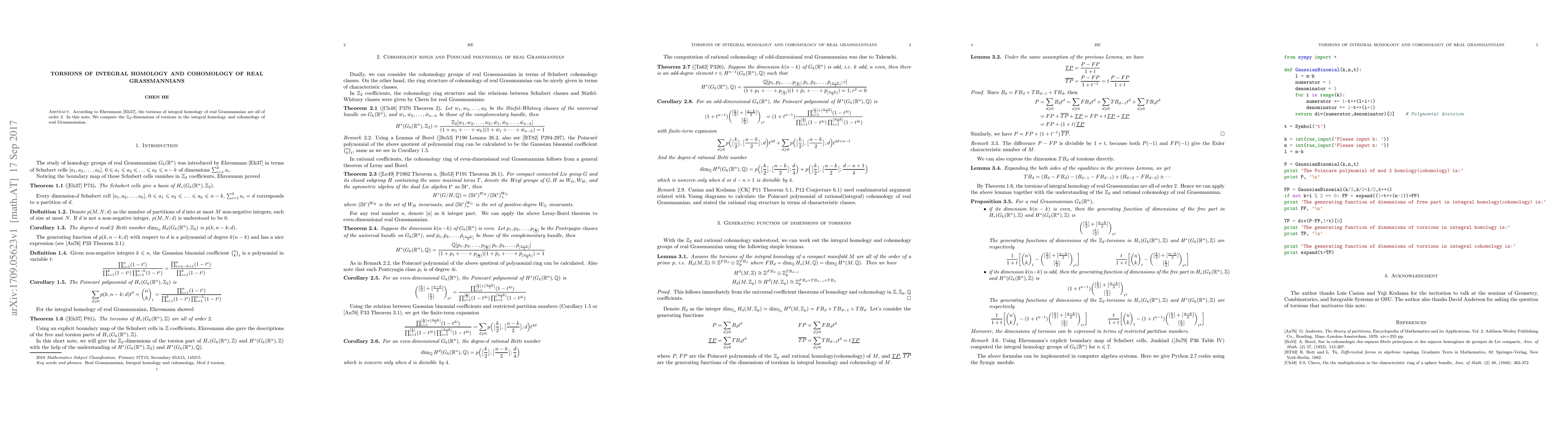 This paper computes the $\mathbb{Z}_2$-dimensions of torsions in the integral homology and cohomology of real Grassmannians, confirming that all torsions in their integral homology are of order $2$ as per Ehresmann's result.