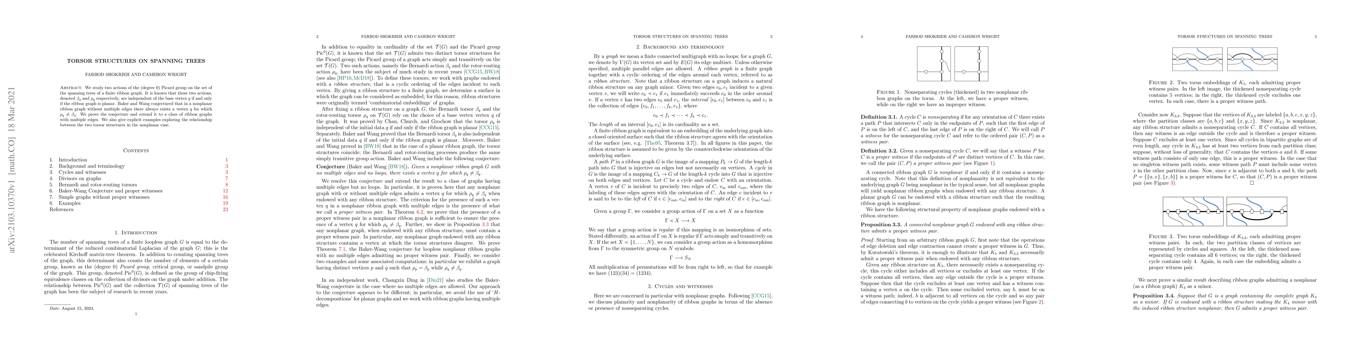 This paper proves Baker and Wang's conjecture that in nonplanar ribbon graphs without multiple edges, there exists a vertex where two specific actions of the Picard group differ. The authors extend this result to ribbon graphs with multiple edges and provide explicit examples to illustrate the relationship between the two torsor structures.
