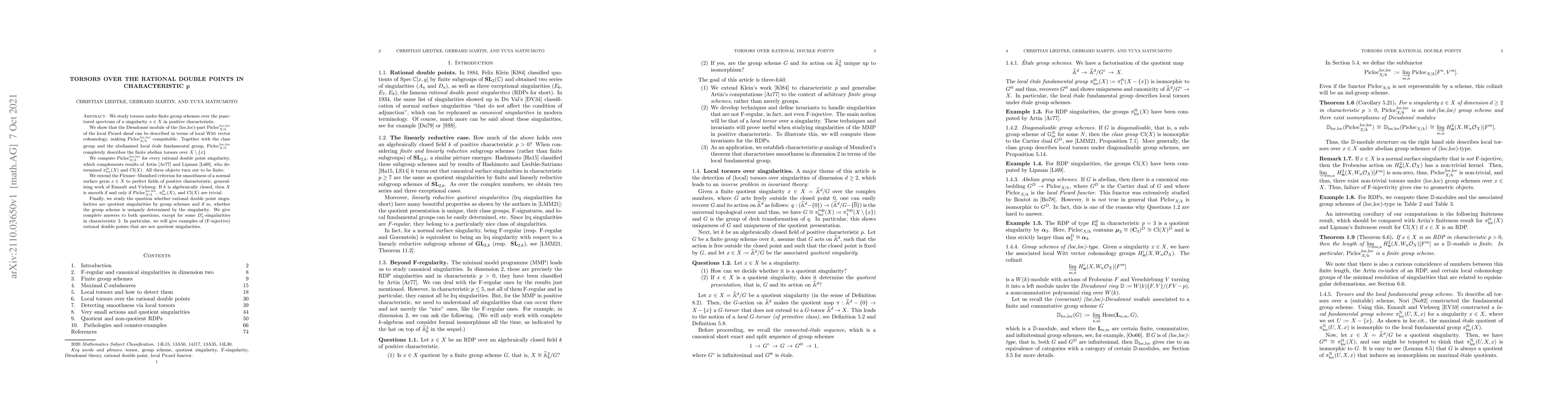 This paper investigates finite abelian torsors over rational double point singularities in positive characteristic, showing that the local Picard sheaf's (loc,loc)-part can be described via local Witt vector cohomology. It computes this sheaf for all rational double point singularities and extends criteria for smoothness to perfect fields, concluding that certain singularities are not quotient singularities.