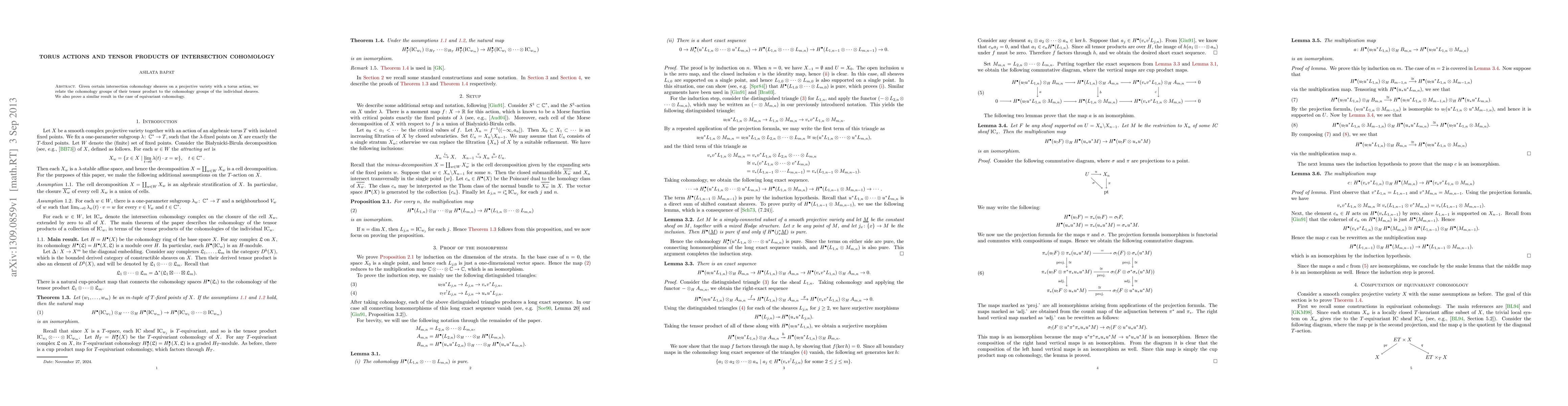 Researchers found a way to relate the cohomology groups of intersection cohomology sheaves on a projective variety with a torus action to their tensor product, providing insight into equivariant cohomology.