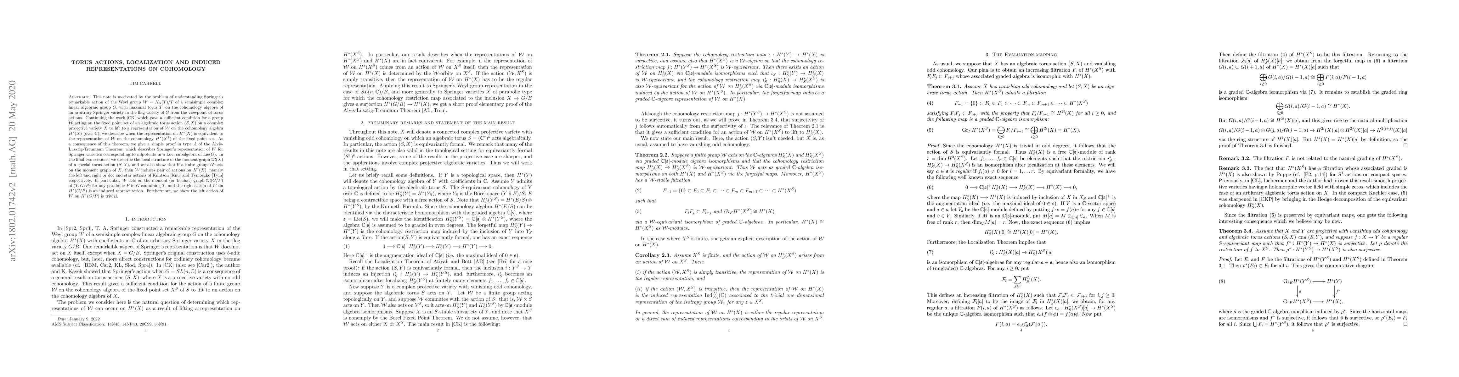 This work contributes to the understanding of Springer's representation and moment graphs, providing new insights into the cohomology of algebraic varieties under torus actions, which has implications for representation theory and algebraic geometry.