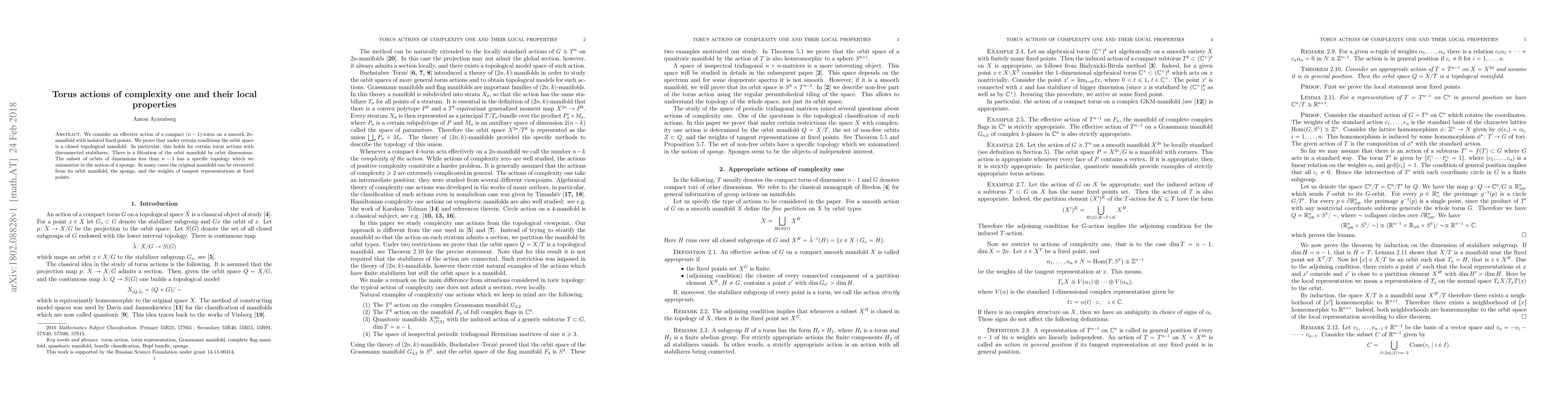 We consider an effective action of a compact (n-1)-torus on a smooth 2n-manifold with isolated fixed points. We prove that under certain conditions the orbit space is a closed topological manifold. In particular, this holds for certain torus actions with disconnected stabilizers. There is a filtration of the orbit manifold by orbit dimensions. The subset of orbits of dimensions less than n-1 has a specific topology which we axiomatize in the notion of a sponge. In many cases the original manifold can be recovered from its orbit manifold, the sponge, and the weights of tangent representations at fixed points.