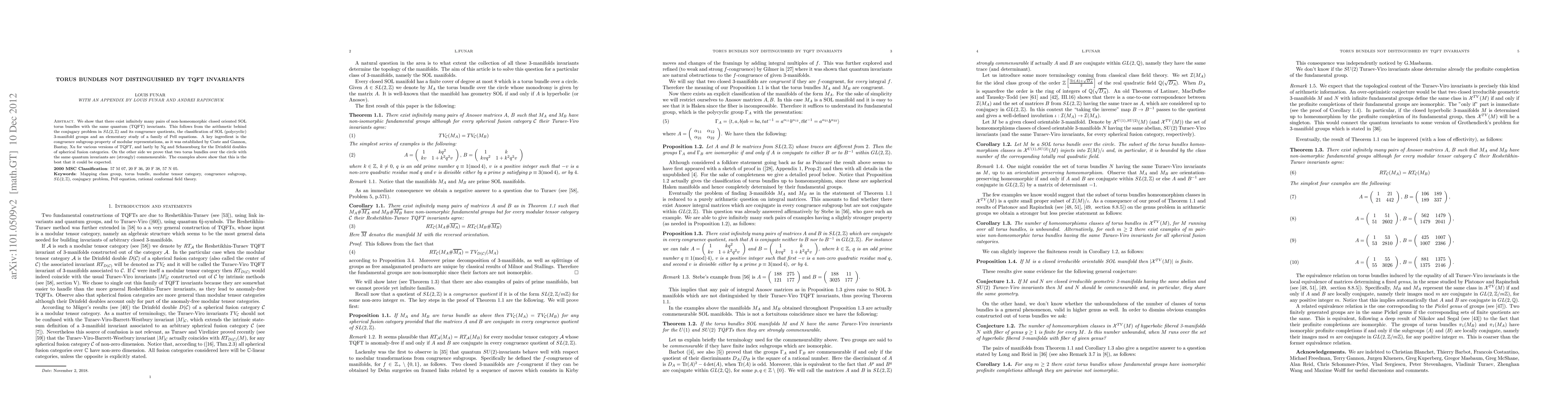We show that there exist infinitely many pairs of non-homeomorphic closed oriented SOL torus bundles with the same quantum (TQFT) invariants. This follows from the arithmetic behind the conjugacy problem in $SL(2,\Z)$ and its congruence quotients, the classification of SOL (polycyclic) 3-manifold groups and an elementary study of a family of Pell equations. A key ingredient is the congruence subgroup property of modular representations, as it was established by Coste and Gannon, Bantay, Xu for various versions of TQFT, and lastly by Ng and Schauenburg for the Drinfeld doubles of spherical fusion categories. On the other side we prove that two torus bundles over the circle with the same quantum invariants are (strongly) commensurable. The examples above show that this is the best that it could be expected.