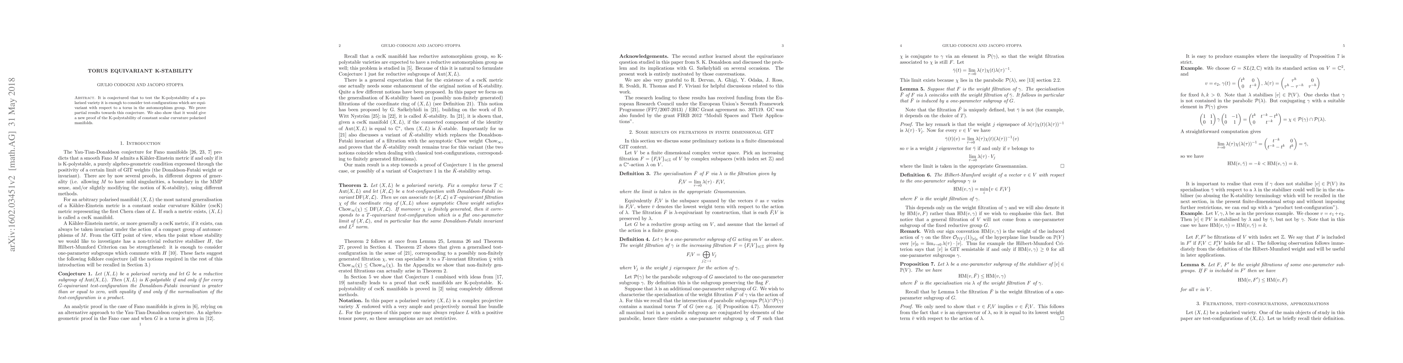 It is conjectured that to test the K-polystability of a polarised variety it is enough to consider test-configurations which are equivariant with respect to a torus in the automorphism group. We prove partial results towards this conjecture. We also show that it would give a new proof of the K-polystability of constant scalar curvature polarised manifolds.