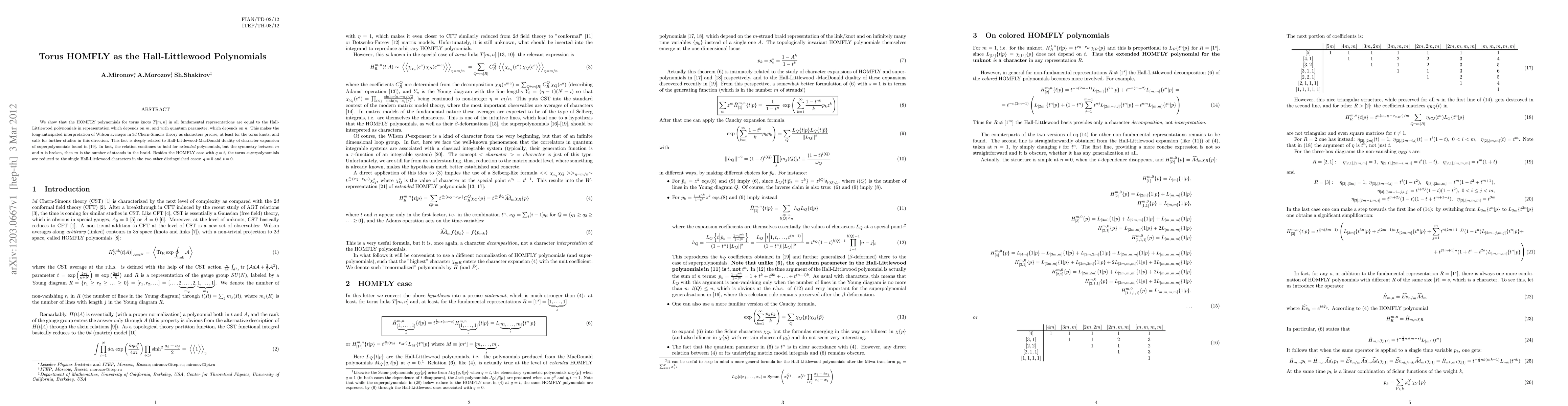 The research establishes a precise equivalence between HOMFLY polynomials for torus knots and Hall-Littlewood polynomials, revealing the interpretation of Wilson averages in 3d Chern-Simons theory for these knots. This connection extends to extended polynomials but loses symmetry between parameters.