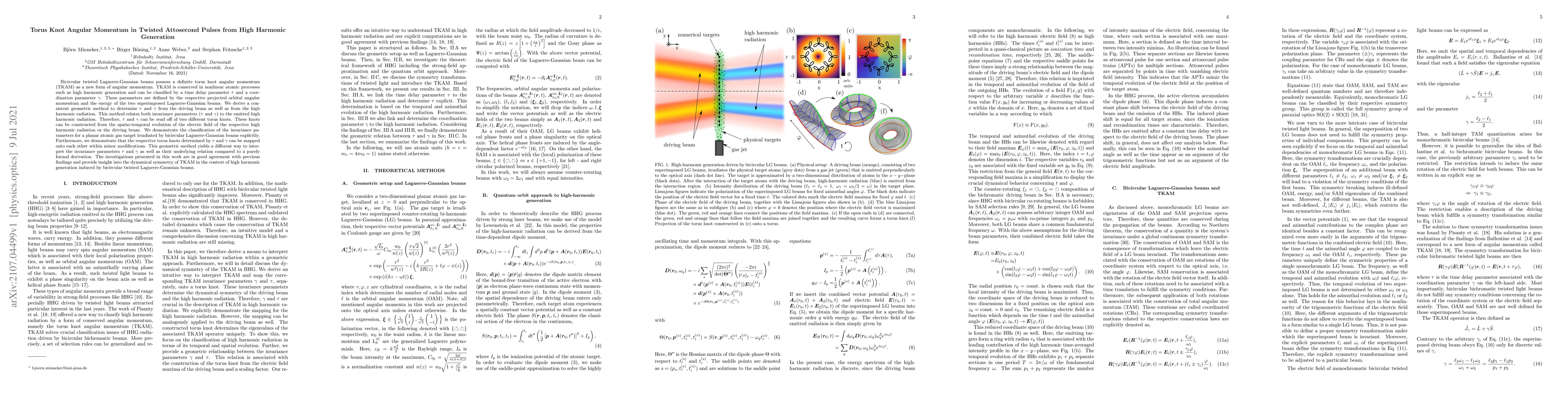 The research develops a geometric method to determine the time delay parameter τ associated with the Torus Knot Angular Momentum (TKAM) in High Harmonic Generation (HHG) using planar atomic gas targets irradiated by bicircular Laguerre-Gaussian beams.