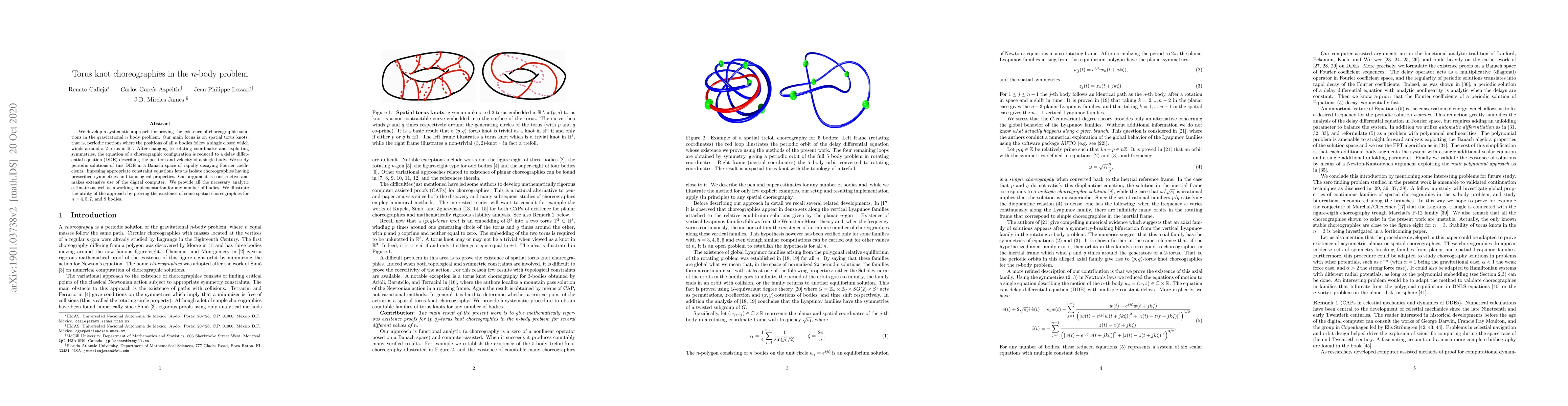 The paper develops a systematic approach using a digital computer to prove the existence of choreographic solutions in the gravitational n-body problem, focusing on spatial torus knots. It reduces the equation of a choreographic configuration to a delay differential equation (DDE) and studies periodic solutions in a Banach space of rapidly decaying Fourier coefficients, isolating choreographies with prescribed symmetries and topological properties.