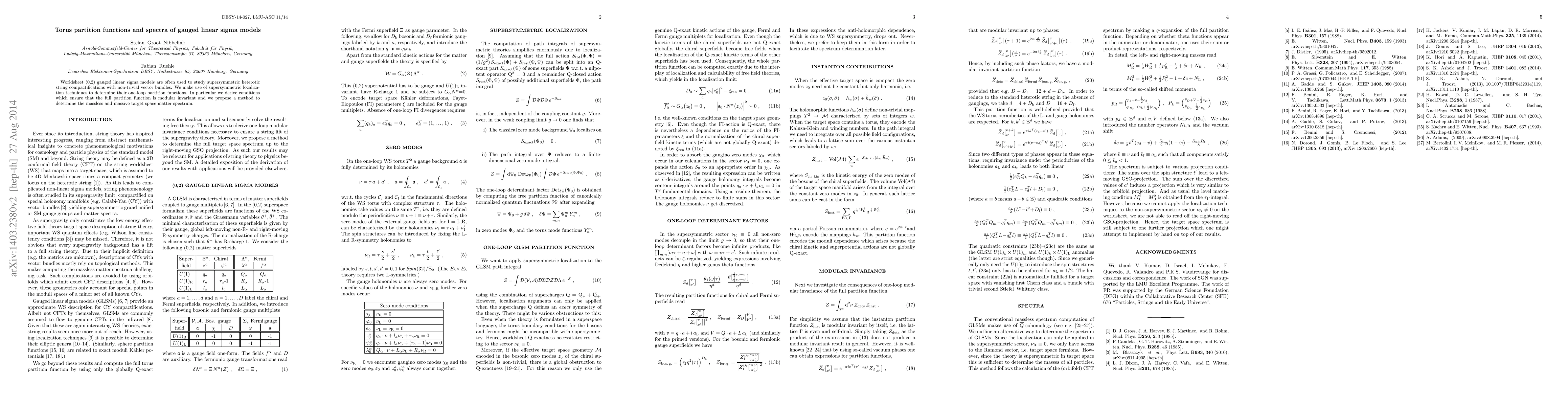 This paper utilizes supersymmetric localization techniques to determine the one-loop partition functions of (0,2) gauged linear sigma models, ensuring modular invariance, and proposes a method to ascertain the target space matter spectrum, including both massless and massive particles.
