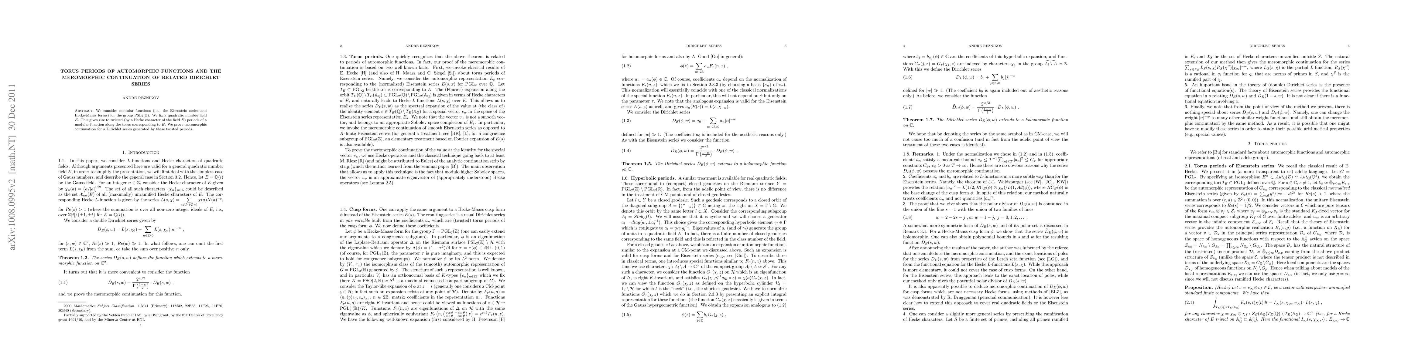 We consider modular functions (i.e., the Eisenstein series and Hecke-Maass forms) for the group PSL(2,Z). We fix a quadratic number field E. This gives rise to twisted (by a Hecke character of the field E) periods of a modular function along the torus corresponding to E. We prove meromorphic continuation for a Dirichlet series generated by these twisted periods.
