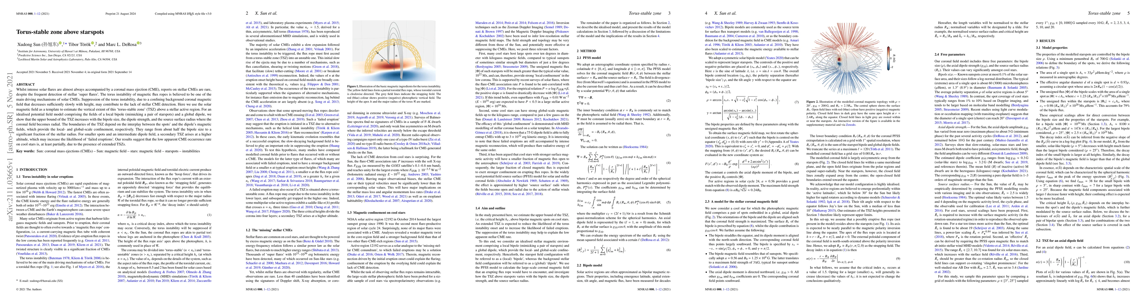 The research uses an idealized coronal magnetic field model to estimate the extent of the Torus-Stable Zone (TSZ) above a bipolar stellar active region embedded in a global dipole field.