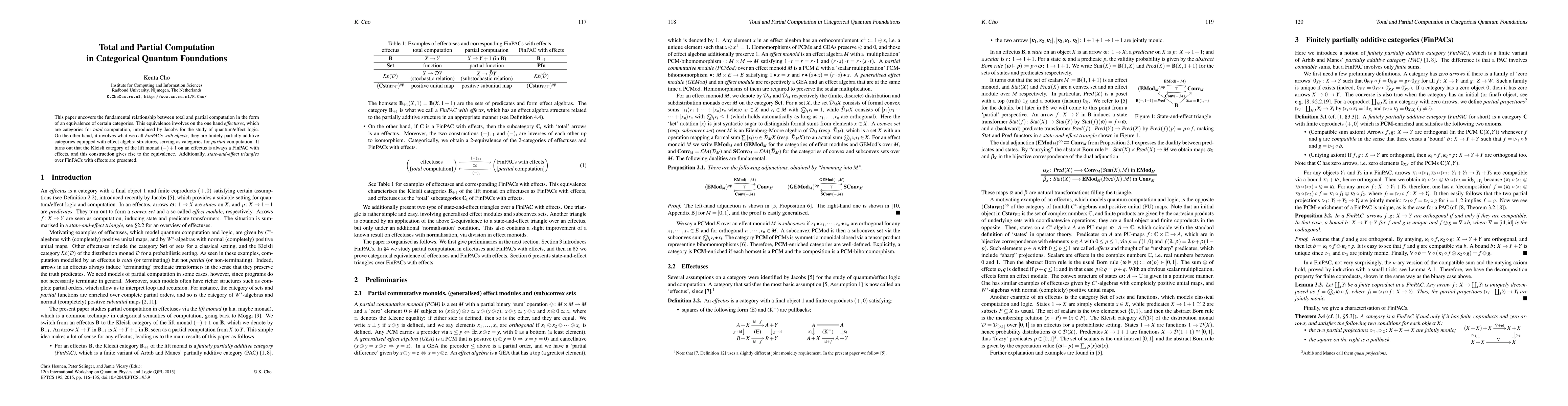Researchers found an equivalence between total computation (effectuses) and partial computation (Finitely Partially Additive Categories with effects), revealing a fundamental connection between the two.