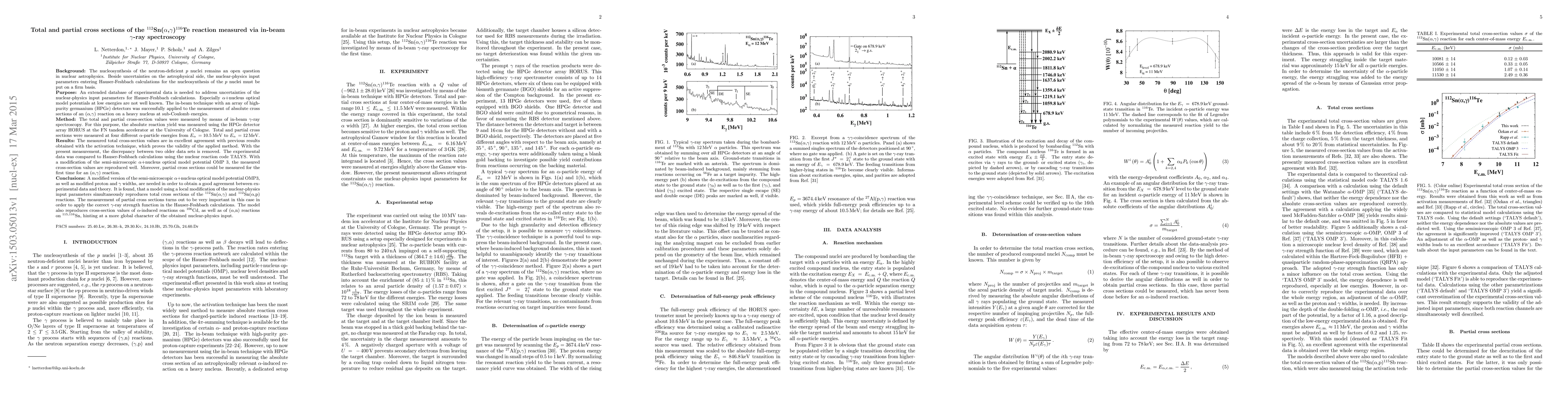 An extended database of experimental data is needed to address uncertainties of the nuclear-physics input parameters for Hauser-Feshbach calculations. Especially $\alpha$+nucleus optical model potentials at low energies are not well known. The in-beam technique with an array of high-purity germanium (HPGe) detectors was successfully applied to the measurement of absolute cross sections of an ($\alpha$,$\gamma$) reaction on a heavy nucleus at sub-Coulomb energies. The total and partial cross-section values were measured by means of in-beam $\gamma$-ray spectroscopy. Total and partial cross sections were measured at four different $\alpha$-particle energies from $E_\alpha = 10.5$ MeV to $E_\alpha = 12$ MeV. The measured total cross-section values are in excellent agreement with previous results obtained with the activation technique, which proves the validity of the applied method. The experimental data was compared to Hauser-Feshbach calculations using the nuclear reaction code TALYS. A modified version of the semi-microscopic $\alpha$+nucleus optical model potential OMP 3, as well as modified proton and $\gamma$ widths, are needed in order to obtain a good agreement between experimental data and theory. It is found, that a model using a local modification of the nuclear-physics input parameters simultaneously reproduces total cross sections of the $^{112}$Sn($\alpha$,$\gamma$) and $^{112}$Sn($\alpha$,p) reactions. The measurement of partial cross sections turns out to be very important in this case in order to apply the correct $\gamma$-ray strength function in the Hauser-Feshbach calculations. The model also reproduces cross-section values of $\alpha$-induced reactions on $^{106}$Cd, as well as of ($\alpha$,n) reactions on $^{115,116}$Sn, hinting at a more global character of the obtained nuclear-physics input.