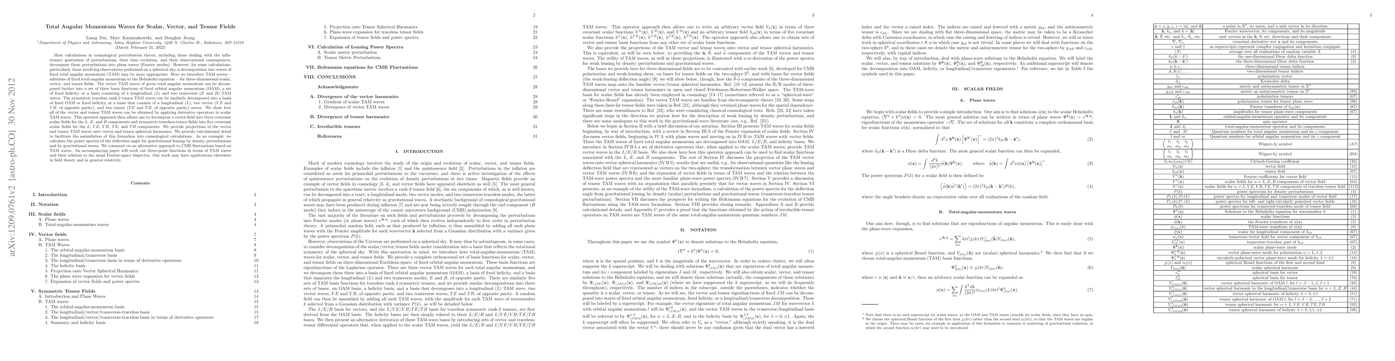 This paper introduces total angular momentum (TAM) waves for scalar, vector, and tensor fields, offering an alternative to plane wave decompositions in cosmological perturbation theory. It provides a detailed operator approach for decomposing these TAM waves and discusses their applications in gravitational lensing and CMB fluctuations.
